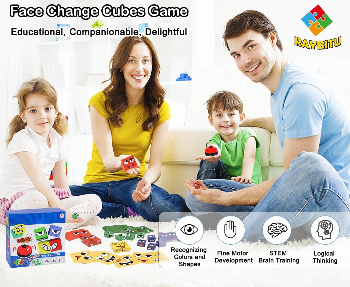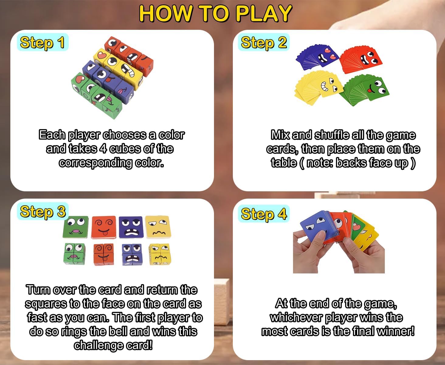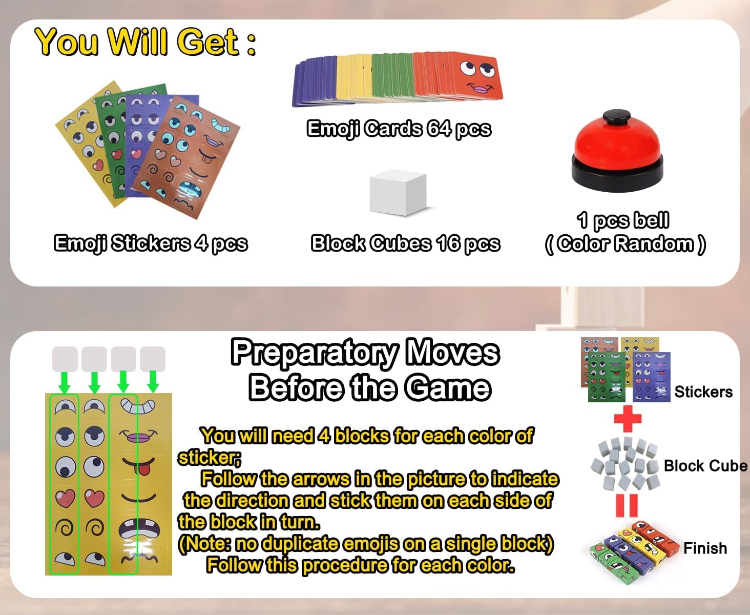 The JOYCY Emoji Battle Cube Game is a hilarious and action-packed matching game that helps children sharpen reflexes, recognize emojis, and engage in interactive competition. Designed for kids aged 3 and up, this colorful game includes 64 vibrant emoji cards, 16 expression cubes in four colors, and a ding bell to kick off fun-filled battles. Players race to rearrange the cubes to match the face shown on the card, challenging their speed, focus, and visual memory. With expressive emoji-style faces that range from silly to surprised, this game encourages facial expression awareness in a joyful and engaging way. Whether played one-on-one or in a group, it's perfect for classrooms, parties, and family game nights. Built with kid-friendly materials and easy-to-grasp pieces, it offers endless rounds of screen-free entertainment. Introduce your child to the exciting world of emotions with this fast-paced, engaging Emoji Battle Cube Game! Perfect for children aged 3 and above, this innovative game combines quick thinking with emotional intelligence development. The set includes 64 colourful emoji cards featuring various expressions, 16 matching blocks with fun facial expressions, and a responsive bell for lightning-quick reactions. Players must quickly match the emotional expressions on the cards with the corresponding block patterns, then ring the bell to claim their victory! Measuring 16cm x 16cm x 5.5cm, this compact game is ideal for both home and travel. The durable cards and blocks are sized perfectly for little hands, with each block measuring 2cm x 2cm x 2cm. This educational game helps children develop pattern recognition skills, emotional awareness, and quick reflexes while having endless fun. It's an excellent choice for family game nights, playdates, or as an engaging learning tool for early childhood development.