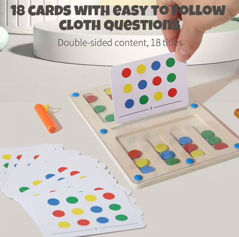 Boost brainpower through play with the JOYCY Magnetic Logic Game, a hands-on educational Game designed to challenge your color-matching and problem-solving skills! Players use magnetic wands to move colored discs into the correct positions according to illustrated challenge cards—no touching allowed! This interactive 2-player game encourages cognitive development, logic building, and fine motor skills, making it perfect for children, parents, and educators alike. Whether played solo or in a head-to-head competition, it promotes strategic thinking, focus, and patience. Crafted with bright, durable materials and a clever barrier design to prevent peeking, this STEM-inspired game offers hours of brain-teasing entertainment and developmental value for kids ages 3 and up.