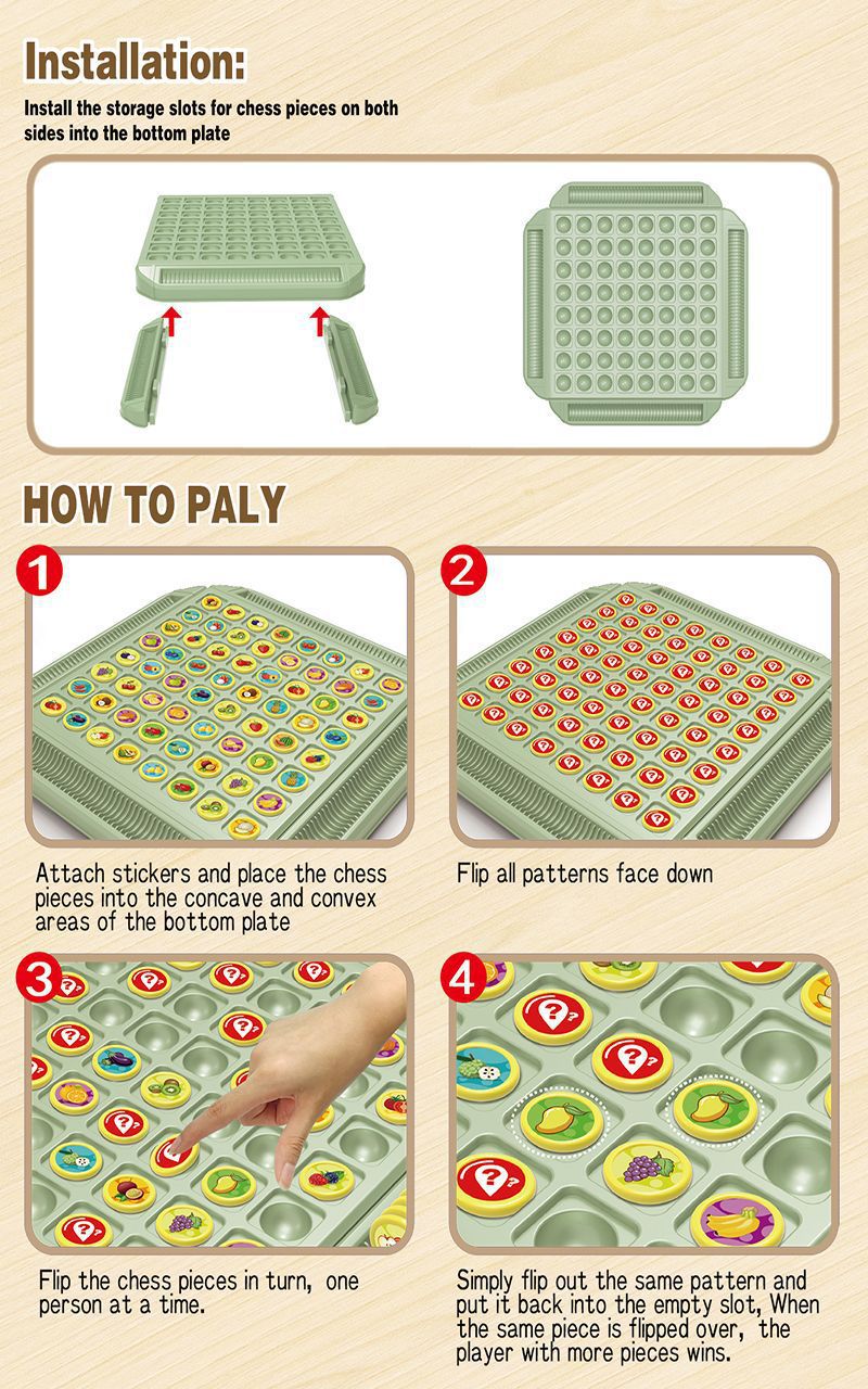 Train the mind while keeping playtime engaging with the JOYCY Memory Flipped Fun Game, a dynamic memory and matching challenge designed to sharpen recognition, attention, and logical thinking. Featuring a double-layered board with 64 circular pieces and fun, colorful sticker graphics, players take turns flipping to find matching images from memory. This multiplayer setup encourages healthy competition, quick response, and visual recall in a lively and screen-free environment. With easy storage slots built into the board and a clean, durable design, it’s perfect for repeated use at home, in learning spaces, or on the go. Whether used solo or with others, this game offers meaningful brain-building engagement for young minds.